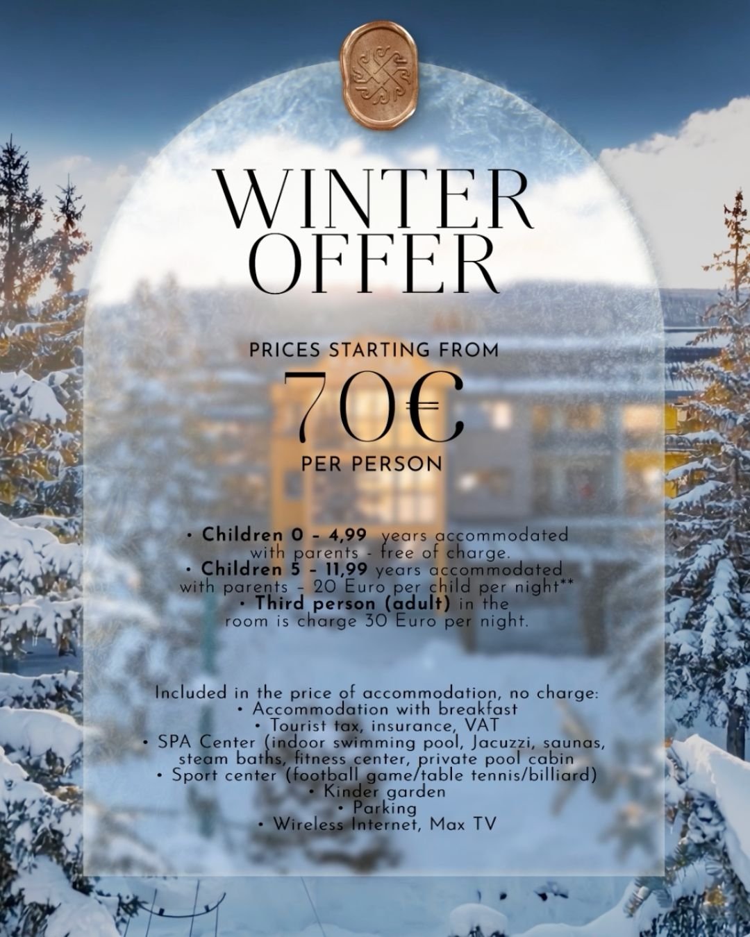 Our resort features a variety of elegant and spacious accommodations, from cozy rooms to luxurious suites. The interiors of our accommodations have been designed to reflect the natural beauty of the surrounding mountain range, with warm colors and wood accents that create a cozy and inviting atmosphere. Our rooms offer breathtaking views of the mountains, and guests can enjoy the crisp mountain air from the private balcony or terrace in almost each room.